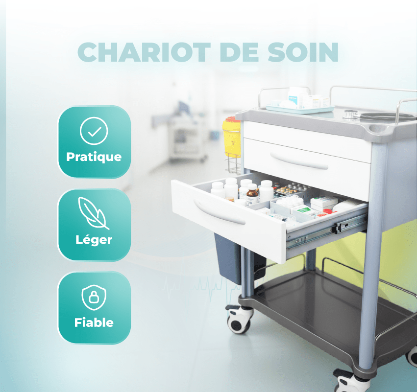 Lightweight -Compact & ergonomic The trolley is used for storing and transferring all the treatment equipment that may be needed during emergency interventions in emergency departments and intensive care units.